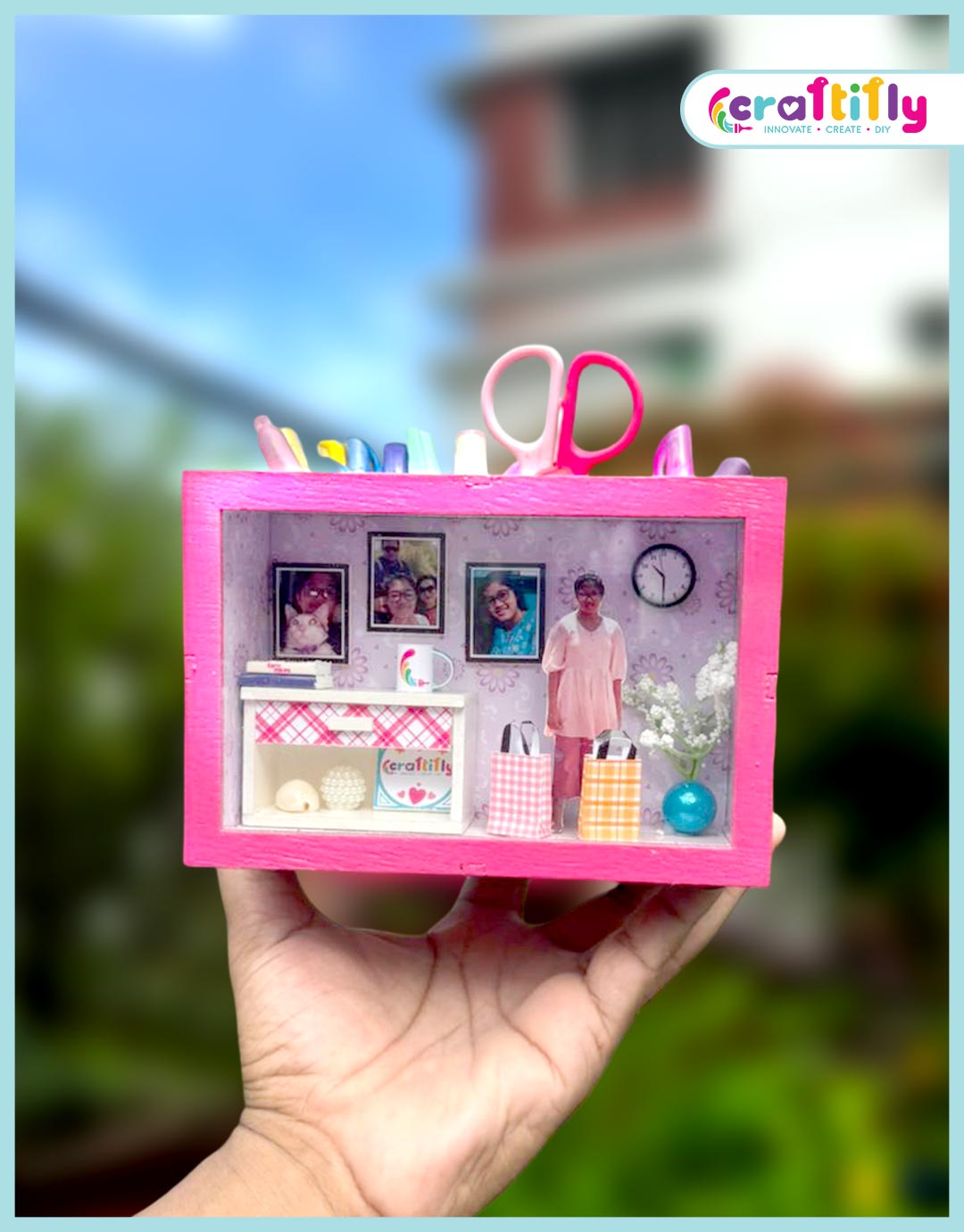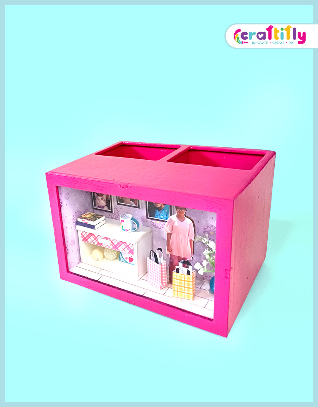 Add a splash of sweetness and creativity to your study or workspace with this Pink 3D Shadow Box Cum Pen Stand — the perfect blend of style, art, and functionality that every girl will adore!