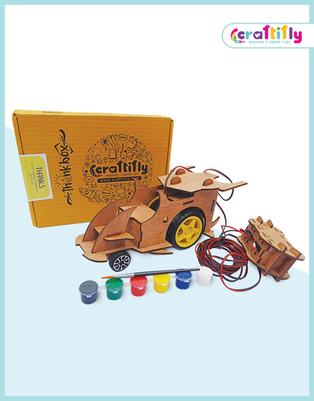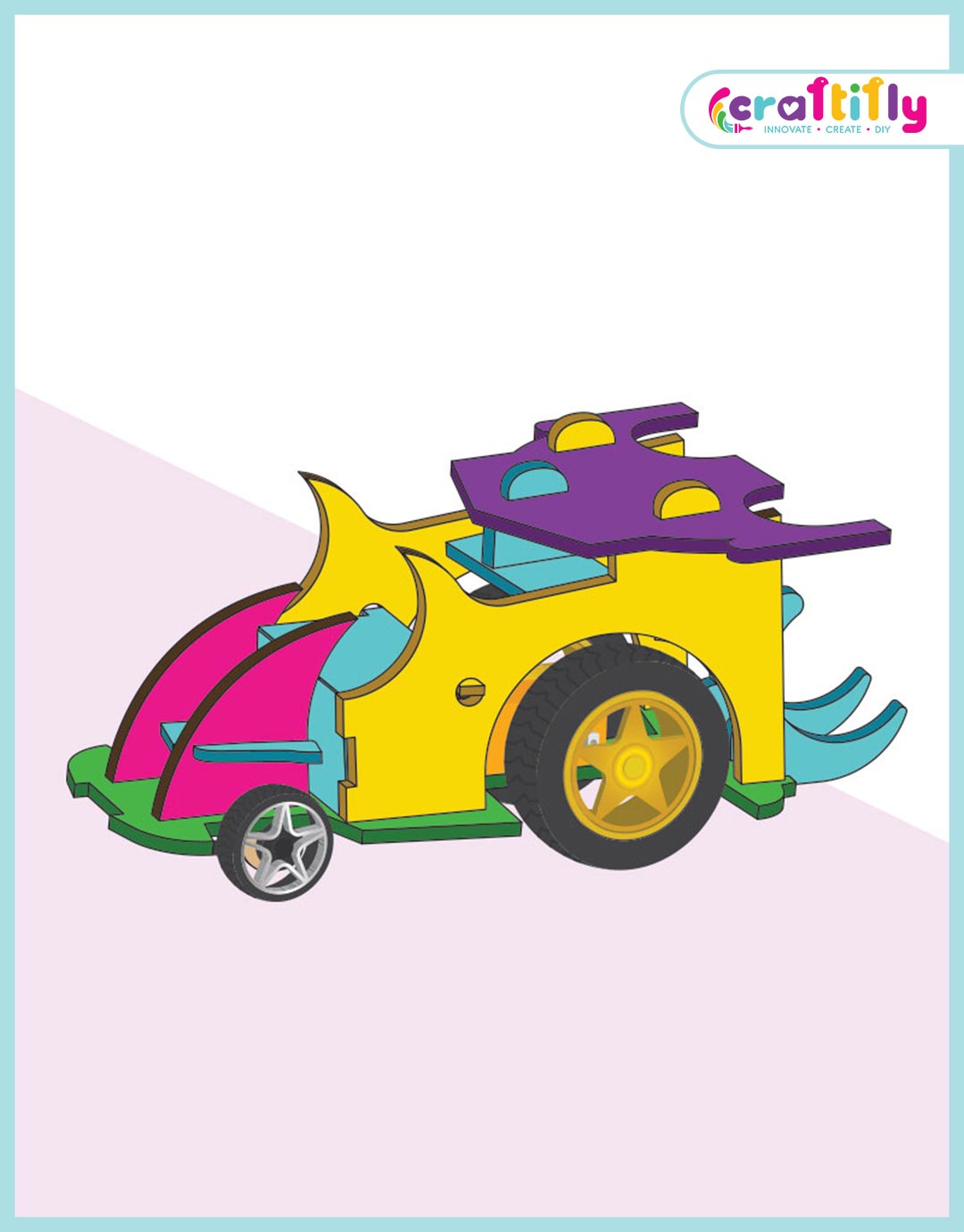 Craftifly.com provides best DIY kit in Bangladesh. DIY wooden dragon car is one of our best product. This DIY Dragon car operates on the principle of electrical propulsion. When the batteries are installed and connected to the DC motor & remote, electrical energy is converted into mechanical energy. The motor spins the attached wheel, creating thrust. The thrust generated by the spinning wheels.